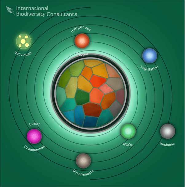 The cross-societal and collaborative aspects of the theme are at the core of the International Biodiversity Biodiversity Consultants (IBC) business model, which focuses on the three main components as shown below:
